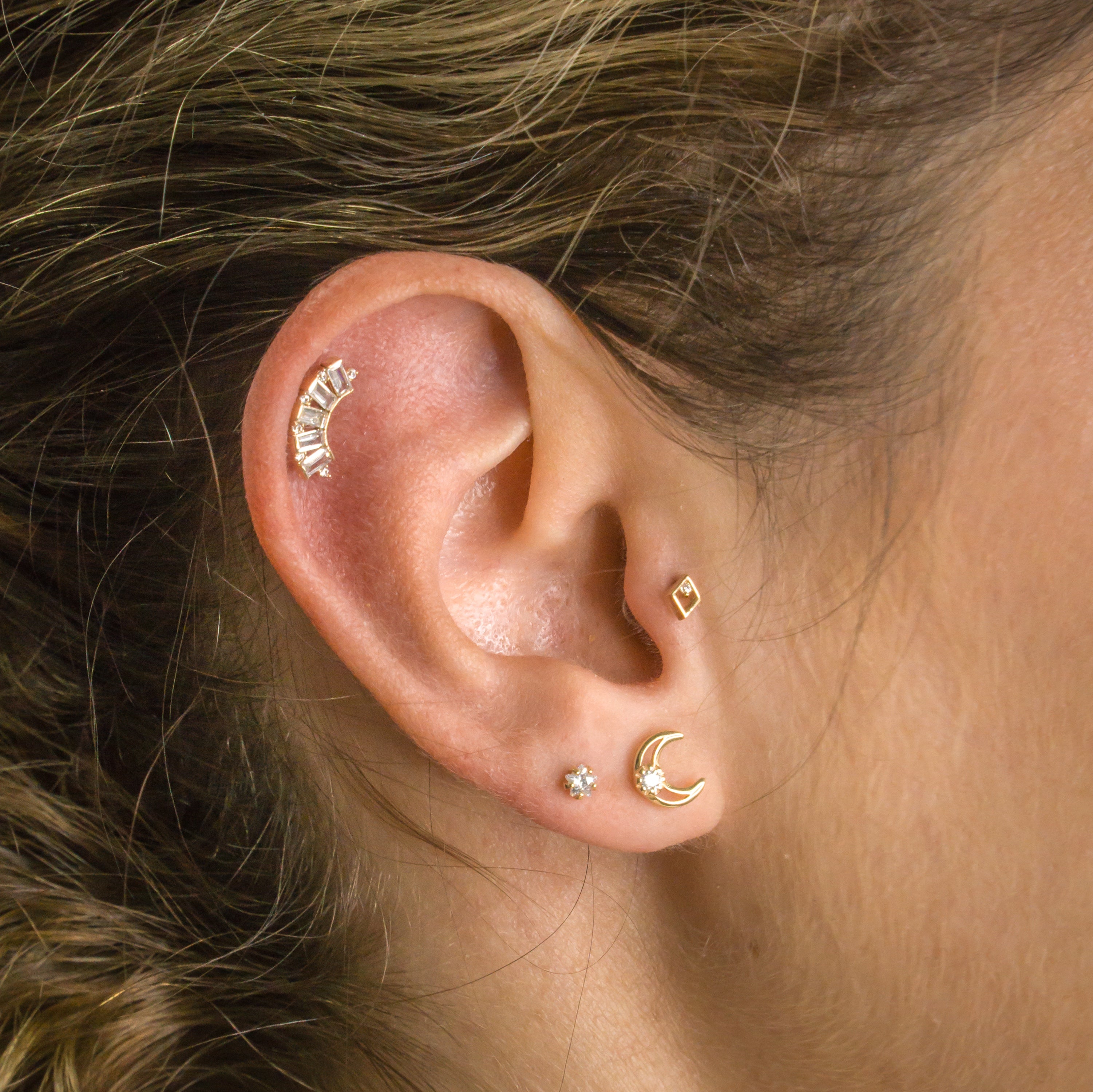 24k PVD gold trio piercing with zircons